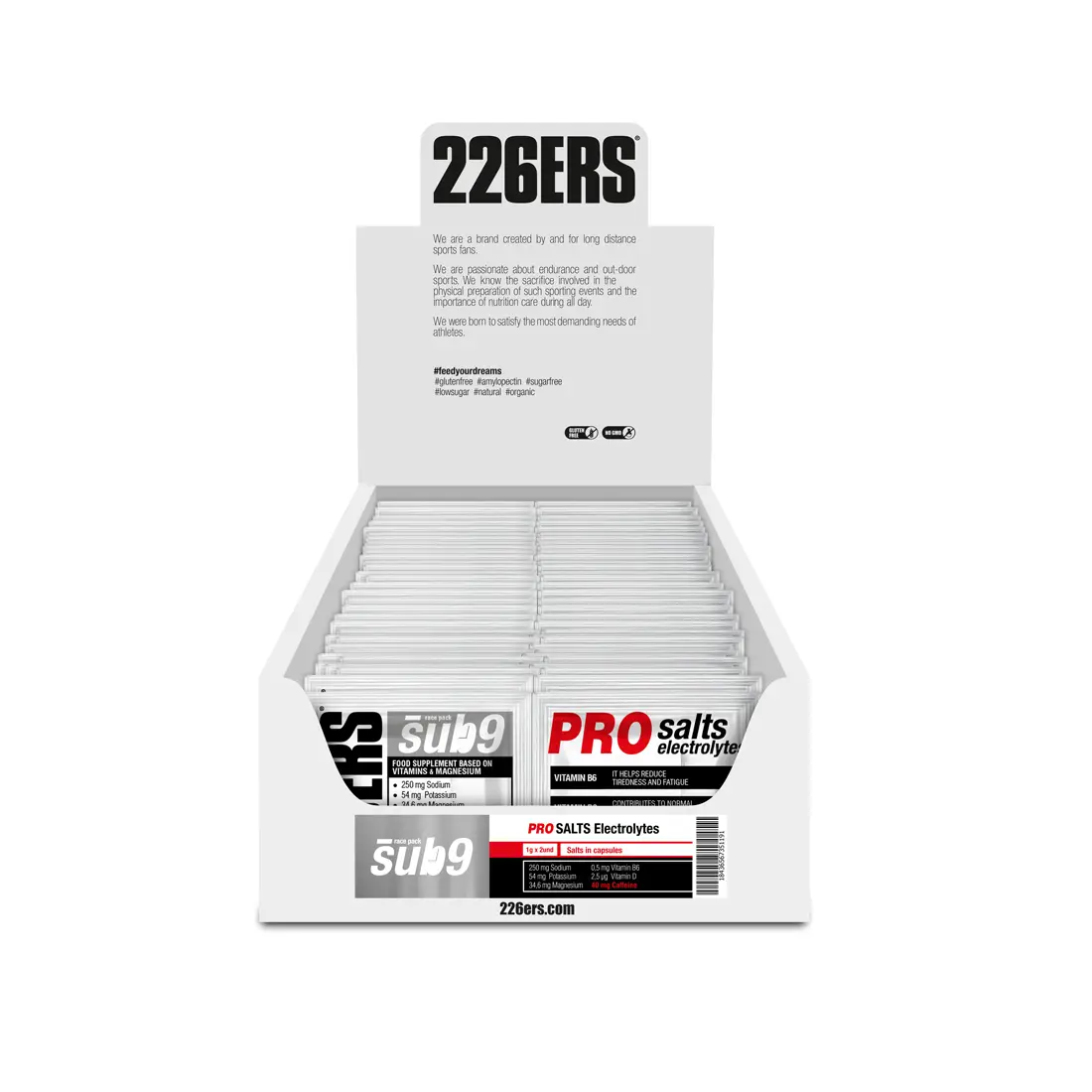 Kapsuly SUB9 PRO SALTS ELECTROLYTES 226ERS obsahujú 40 mg kofeínu a kľúčové elektrolyty vrátane sodíka, horčíka a draslíka. Toto zloženie pomáha udržiavať rovnováhu elektrolytov, predchádza svalovým kŕčom a podporuje telesný výkon počas intenzívnej fyzickej aktivity, najmä v náročných podmienkach, ako sú vysoké teploty alebo vlhkosť.
